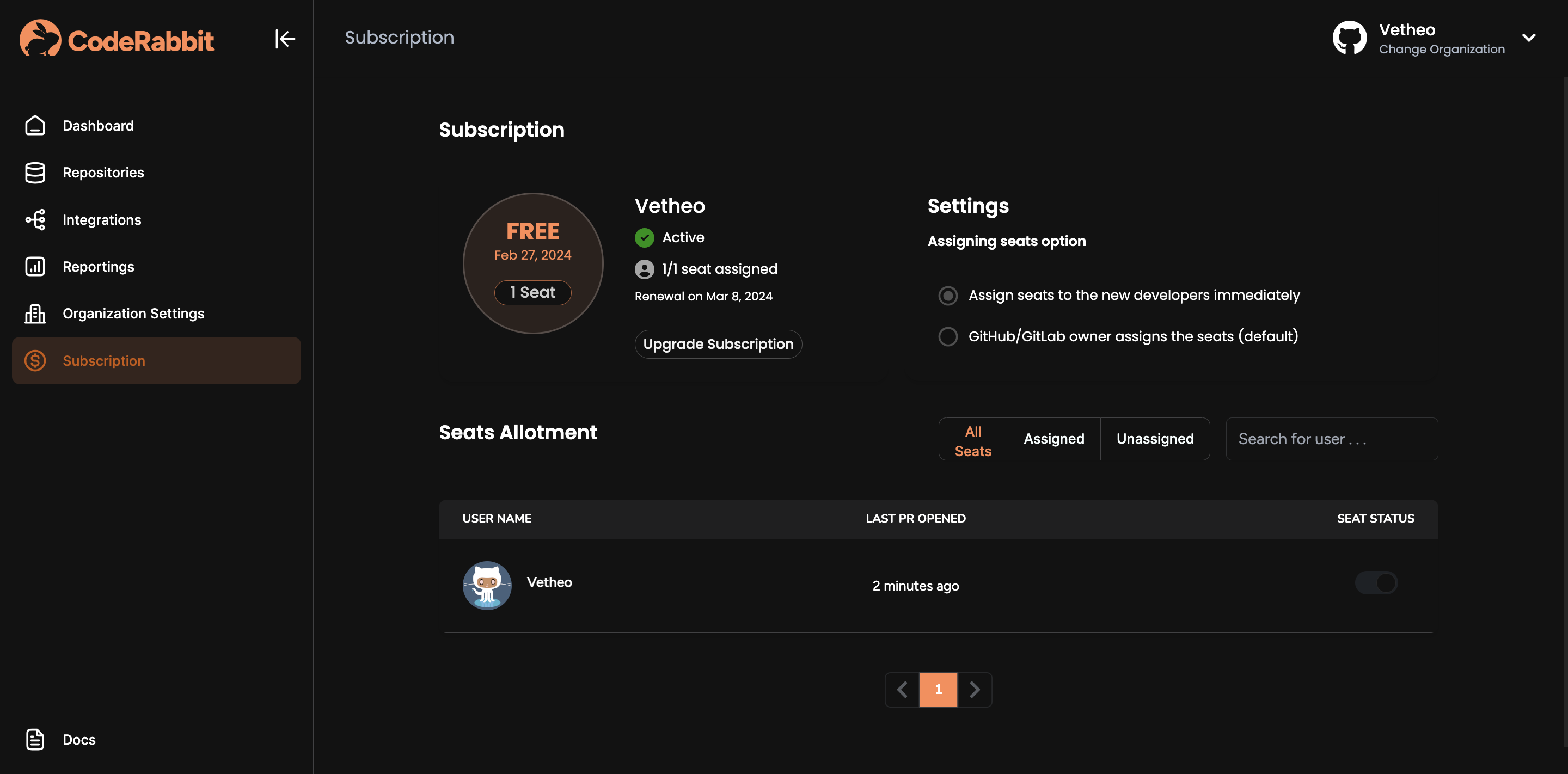 - CodeRabbit Seats Every developer who submits a pull request is counted as a separate seat. Seats can be purchased for all or for a limited number of developers.